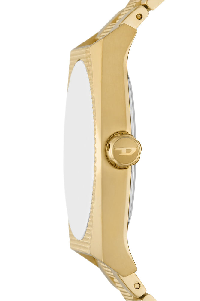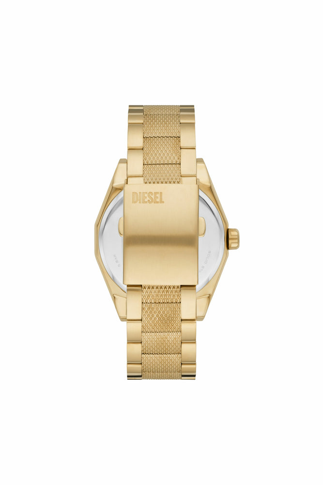 Diesel's 43mm Scraper watch features a gold-tone sunray dial, three-hand movement and gold-tone stainless steel bracelet.ID: