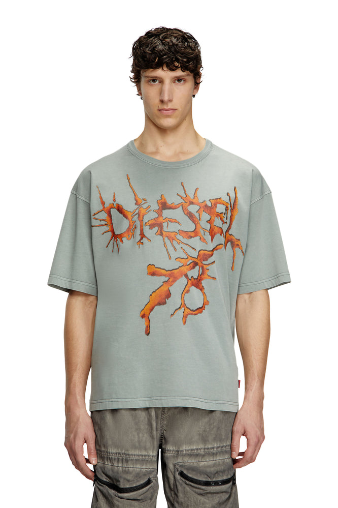 This men’s garment-dyed T-shirt combines a soft fade with colourful tattoo-inspired graphics depicting a splashed Diesel 78 logo and a spooky fairy. It’s cut from cotton jersey and has a relaxed, drop-shoulder fitID: